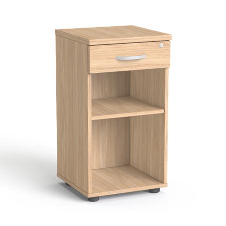 a tárolóelem magassága megegyezik az íróasztalok magasságával 1 fafiókkal és egy polccal mérete: 73,5x40x40 cm tető-, fenék- és oldallapok vastagsága: 25 mm hátoldala préselt lemez, 3,2 mm élzárás: 2 mm összeszerelve szállítjuk! szín: tölgy