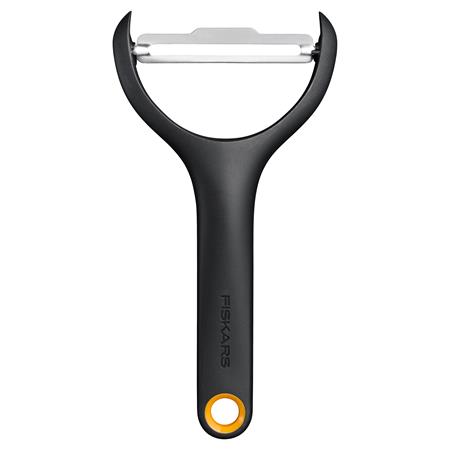 A forgó, sima élű rozsdamentes acél penge tökéletesen követi a zöldségek formáját, így egyenletes, vékony héjeltávolítást biztosít minimális alapanyag-veszteséggel.