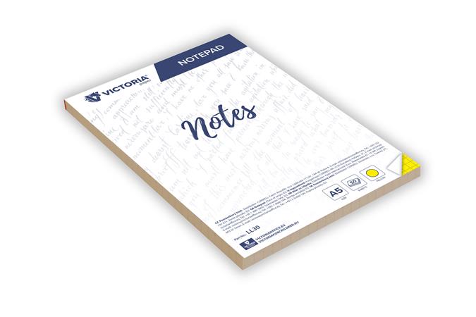 Jegyzettömb, A5, 5x50 lap, négyzetrácsos, VICTORIA OFFICE, sárga